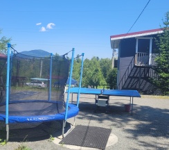 Отдыхали в июне. В целом очень ощущение положительное: удобное местоположение: пойдешь направо - Шерегеш , пойдешь налево - подъемники на г. Зеленую. До ближайшего подъемника 10-12 минут хода по ровной дороге. Подъемник с закрытыми кабинками. Территория благоустроена в плане досуга: бассейн просто шикарный - теплая вода, шезлонги, наличие бани - как дополнительный бонус в холодную погоду, теннисный стол - для взрослых и детей, плюс качели и батут в хорошую погоду! Мы жили в большом доме на 12-14 человек. 1 этаж вообще без претензий- и стол на компанию и зона отдыха с диваном и телеком, посуды в достатке: и кастрюли и салатники и тарелки. Посудомойка - отличная помощь на большую компанию. Второй этаж спальни и санузел. Вот тут немножко не хватило нам розеток. И очередь в санузел))), несмотря на наличие санузла на первом . И небольшой затык с постельным - кровати двуспальные, но с одним одеялом! Дополнительное белье за отдельную плату- тут мы во мнениях с хозяйкой разошлись. Но погода и компания сделали свое дело- спасибо за прекрасный отдых и море впечатлений! Надеюсь в перспективе хозяева будут более клиентоориентированы.