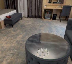 Отличный отель, чистый, максимально комфортный. Разнообразный завтрак включен. Вежливый персонал, но честно говоря, есть над чем поработать в этом направлении команде отеля. Отель находится напротив ТЦ Грозный Молл, на 1-2 этаже. В номере все принадлежности для ванны, фен, утюг, кондиционер, ТВ, в общем всё что нужно. Также мини бар за отдельную плату.