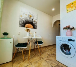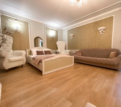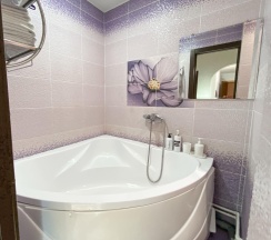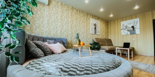 Квартира оснащена: комфортабельной круглой кроватью, заправлена чистым бельем из прачечной, раскладным диваном. В стоимость входит набор полотенец для 2-х гостей. В квартире есть уютная светлая кухня, набор посуды и столовых принадлежностей на 4 персоны, банные принадлежности для принятия душа.