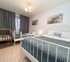 Квартира оснащена: четырьмя комфортабельными двуспальными кроватями, заправлены чистым бельем из прачечной, раскладным диваном, двухъярусной кроватью. В стоимость входит набор полотенец для 2-х гостей. В квартире есть уютная светлая кухня, набор посуды и столовых принадлежностей на 4 персоны, банные принадлежности для принятия душа.