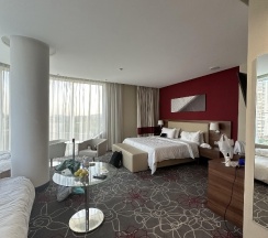 Касаемо отеля , все было на высшем уровне , убирали комнату как положено , были бутылки с водой на каждого члена семьи , так же предоставили отдельную кровать для ребёнка , кровать была очень мягкой , спалось очень хорошо, остались довольны , спасибо большое за прекрасное обслуживание 🥰