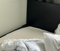 Были трудности с поиском студии, написали администратору- нам подробно объяснили как пройти. Также отмечу, что заселение происходит удаленно. В номере двуспальная кровать и диван, который можно разложить и появляется ещё одно спальное место.