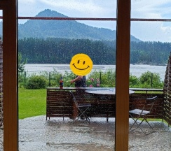 Очень уютный, чистый номер. Его изюминка - панорамные окна с видом на Катунь. Из других окон видно горы. Территория ухоженная, аккуратно подстриженная лужайка. Хозяйка - прелесть!!