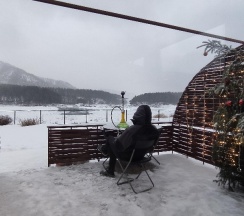Любимейшее место ❤домики с видом на Катунь-вот она, рукой подать) в домиках чисто, уютно, есть всё необходимое- посуда, мангальная зона, БЕЛОСНЕЖНОЕ постельное и полотенца, а уличный туалет-это вообще произведение искусства 👍он тёплый), а мы ездим зимой, поэтому это важно) были и в двухкомнатном доме и в студии 💯