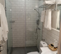 Супер гостиница, рекомендую однозначно, чисто, чайный набор, кто любит кофе, есть кофемашина. Номер обеспечен всем, халаты тапочки ванные принадлежности, чайник ,чай, фен, в общем все все что нужно
