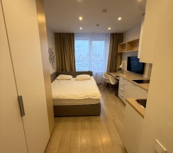 Из плюсов: рядом метро, ТЦ, много кофешек, "Остров мечты". Номер по чистоте убирали на 5 (хотя один день пропустили), в самом номере тепло, хоть и чуть дуло из окна. Белье чистое. Из минусов: мое проживание было рядом с персоналом, который убирает и с 10 утра полный тишины не было, уборка с 15 часов (но будьте готовы, что могут прийти в 10.30), после уборки не пополняют водичку питьевую (хотя в аналогичных апартах Питера это делают постоянно и не 0.33 объёмом, а 0.5), вечно не работает 1 лифт, а на остальных 2 идет просто атака. И ужасно неудобные подушки, высокие и твёрдые. А так все хорошо.
