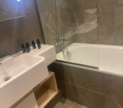 Современный апарт-отель: светлый, чистый номер с оборудованной кухней, хороший напор горячей воды, в ванной комнате имеется зубной набор, шампунь, гель для душа, халаты, тапочки. Также в номере есть гладильная доска, утюг и чайник. Бронировали номер с завтраком, который сервируют на втором этаже БЦ. Выбирали отель по локации: близость к метро, общественному транспорту и Острову Мечты. В шаговой доступности кафе и крупный ТРЦ.