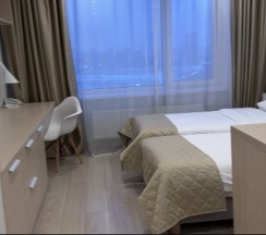 Жила во время своей учебы. Очень понравилось. В номере была и плита, и даже стиральная машина. Все достаточно уютно и без лишней навязчивости. Единственное, но тут скорее момент проектировки или из-за того, что комната персонала напротив почти всегда была открыта (приличная щель)… окно не откроешь иначе звук, как в аэротрубе. Но даже и без окна вентиляция сделана хорошо.