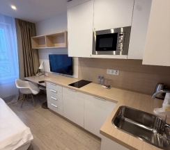 Обязательно будем приез-ть ещё. Нес-ко замеч-и по улучшению, не совсем поняли, на каком этаже находится ресепшн. Когда проходишь лобби, можно было бы повесить хотя бы неб-ой указ-ль или мы не заметили. Для тех, кто впервые приезжает, ресепшн наход-я на 13-м этаже, сразу вызывайте лифт там, где указаны номера этажей, написано наз-е отеля. Также хотелось бы отметить, что некот-е сотру-и ресепшна кажутся немного не очень рады гостям, или с ними недостаточно проработаны навыки общения, добавьте чуть больше улыбки, эмпатии и тепла в общении. И, пожалуйста, проработайте телефонный этикет, отвечать даже на внутренние звонки просто «Ресепшн» так не сойдёт. Нужно здороваться: «Добрый вечер, ресепшн, меня зовут .., чем могу помочь или полезен(а)?» не все сотрудники так себя ведут, но это заметно со стороны. Это задача ФО-супервайзера или ФО-менеджера проводить частые тренинги и прорабатывать разные кейсы. Приехали на 30 минут раньше, номер, конечно, не был готов, но мы спокойно подождали, ведь никто не обязан заселять раньше указанного времени. Через примерно три минуты девушка на ресепшне подошла, отдала ключи от нашего номера и даже сделала апгрейд до студии плюс. Мы остались очень довольны, ведь устали после задержки рейса отдельное спасибо ей. Ещё небольшое замечание, ручки мебели острые мы оба поранились, проходя мимо. Об этом сообщили на ресепшне при выезде, нужно что то мягкое надеть будьте внимательнее, иначе риск поцарапать бедро действительно высок. Также из окон продувает, в номере было прохладно, попросили обогреватель. Было бы классно, если бы добавили доступ к сервисам вроде ИВИ, Кинопоиска, Кион — что-то подобное. Если у вас есть ноутбук и телефон на Android, вы сможете сделать повтор экрана или подключить ноутбук к телевизору через HDMI-кабель с IOS это не работает. Ещё обратил внимание на регистрационную карту, зачем тратить столько бумаги на одного человека два листа А4? Лучше настроить форму так, чтобы всё поместилось на одном листе А4. В целом РЕКОМЕНДУЮ!