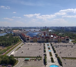 Удобное расположение (метро, автобусы). Семьям с детьми рекомендую, парк развлечений "Остров мечты", торговые центры под боком.