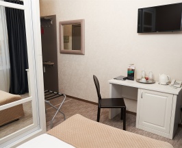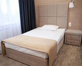 Светлый, уютный номер, площадью 20 кв.м. Дизайн номера выполнен в классическом стиле. Номер оснащен всем необходимым для комфортного пребывания: кровать (1200x1900 см), телевизор, телефон, фен, электрический чайник, мини холодильник, гигиенические средства (гель для душа, шампунь, мыло), тапочки, чайный набор.