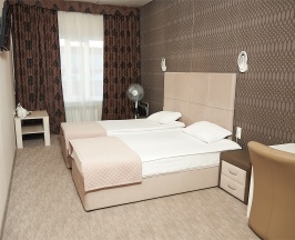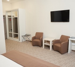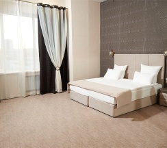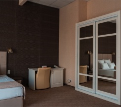 Светлый, уютный, просторный номер, площадью 25 кв.м. Дизайн номера выполнен в классическом стиле. Номер оснащен всем необходимым для комфортного пребывания: кровать (1800x2000 см), телевизор, телефон, фен, электрический чайник, мини холодильник, гигиенические средства (гель для душа, шампунь, мыло), тапочки, чайный набор.