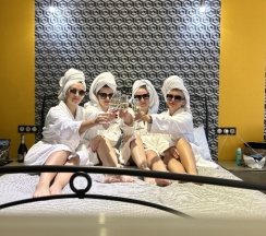 Офигенные апартаменты! На выбор есть разнообразие тематик и площади, на любой вкус. У нас были сборы жениха и невесты, так что мы выбрали "Ажур". Нам оставили подарок ко дню свадьбы, было очень приятно! И в принципе всячески помогали в этот день. Например, нужен был отпариватель рубашки жениху, и нам его любезно предоставили, принесли сразу в номер. Или, например, возможно нужно было задержаться в номере чуть дольше, если бы была нужна из-за фотосессии, и нам без всяческих доплат позволили еще немного побыть в номере. Эта возможность не понадобилась, но было круто, что так легко и просто пошли навстречу) Визажист очень оценила ванную - там спокойно можно спрятаться для сборов от жениха, света достаточно, очень удобная раковина у зеркала, прямо как столик. А администратор в тот день, имя которого, к сожалению, не помню, еще и кофе визажисту принес. Просто душка, дайте ему премию, пожалуйста)