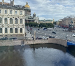 Отличное место в двух шагах от Исакия. Единственный минус-шумновато, т.к. дорога прям под окнами. Но м…ки, любящие порычать моторами по ночам или глухие автомеломаны есть в каждом городе. В остальном-только положительные впечатления. Удобная кухня, хорошие кровати, чисто, опрятно. Бонусы в виде кофемашины на ресепшн и тд. Очень вежливый и отзывчивый персонал.