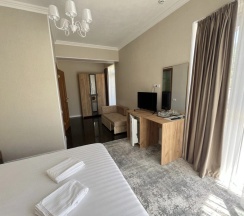 Проживала 9 дней в гостевом доме вместе с подругой и её ребенком. Что сказать номер в принципе неплохой,убирают каждые 3 дня если оставляешь ключи и предупреждаешь администратора .Убирают не очень, в первый раз кажется даже пол не мыли, осталось пятно на полу от мусора, полотенца для ног не положили. В туалете воняет канализацией постоянно , аж до тошноты , мы жили на первом этаже . Нас закусали комары , хотя на окнах есть сетка, спустя несколько дней сказали администратору , дала нам раптер, с ним стало на много лучше .