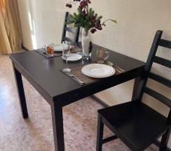 Проживали в люксе по адресу: Байкальская 208. Отличное место в плане расположения, в шаговой доступности супермаркеты: Удача, Пятёрочка, Слата, Абсолют, Берег. До аэропорта 10минут на такси, через дорогу парк. В доме китайский ресторан Hino, можно заказать доставку. Оперативно решили вопрос раннего заезда, не пришлось сидеть в аэропорту, за что большое спасибо. Удаленное заселение, легко, удобно и понятно. Но самая главное , это сама квартира - красивейший дизайн, находиться в таком месте одно удовольствие, очень уютно, атмосферно и комфортно. Всё сделано с заботой о госте - одноразовые предметы гигиены(шампунь, гель, зубная щётка с пастой), пара халатов и тапочек, набор полотенец. На кухне классный набор чаев, кофе, бутилированная вода.Также порадовал быстрый интернет. Арендодатель Надежда приветливая и заботливая, всегда на связи. Большое спасибо за гостеприимство, обязательно еще вернемся.