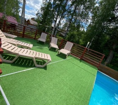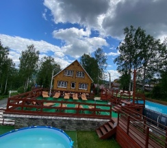 Есть Отличная баня, чан, раньше была купель. Сейчас не знаю. Есть где покушать вкусно. Настоечки брали, мяско жарили. Персонал все как свои. Спасибо ещё раз🔥💓