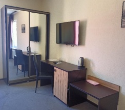 Отличная гостиница, в самом историческом центре города. Я жила одна в стандарте. Отзывчивые сотрудницы на ресепшн. Уютная чистая комната, есть все бытовые принадлежности (гель, мыло, бумага, зубная паста, зубная щетка), минихолодильник, чайник, чай, сахар. Кулер на этаже. Чистое бельё. Очень приличный завтрак, большой выбор - 1 горячее на выбор (каша, омлет, яичница), 2 вида салата, сыр, колбаса, овощи, фрукты, всякие снеки, разное сладкое к чаю, чай-какао, кофе, молоко, сок. Голодным уйти трудно. Да, вид из окон не очень, скажу сразу, но Самару нужно не из номера смотреть, а активно гулять. Во дворе есть столовая. В качестве критики - хорошо бы москитные сетки на окна. И не увидела фена в номере, но мне был не нужен. Спасибо, буду вас рекомендовать и воспользуюсь ещё при случае.