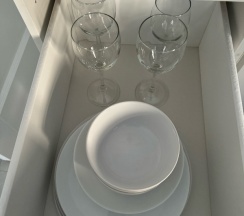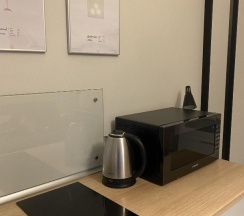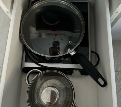 На кухне предоставлены все удобства - индукционная плита, чайник, микроволновка, холодильник,набор посуды (в этом номере на 4х)