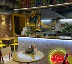 Прикольный, яркий интерьер, уютный летний дворик. Вкусно. Хорошее место