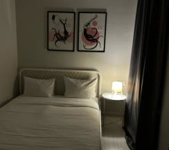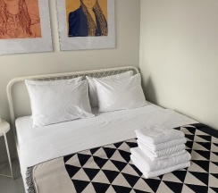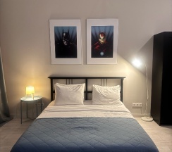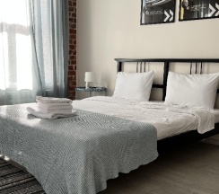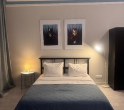 Первое, это получение ключей - бесконтактный въезд. Пароль предоставляется в сообщении, не нужно никого ждать или звонить - просто сказка. Далее, ожидание/реальность - квартира соответствует описанию и фотографиям. Дизайн потрясающий. Комната чистая. Проживали в black&white - очень красивая квартира. Большая мягкая кровать, 4 подушки, есть 1 тумбочка (рядом розетка) и шкаф в комнате- с зеркалом и рядом так же розетка.