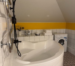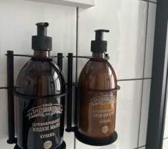 В ванной есть все удобства - мыло, крем, шампунь, кондиционер, гель для душа. (Большой плюс к косметике, ибо у каждого компонента приятный запах, а волосы шелковистые после шампуня). +есть фен, полотенца.