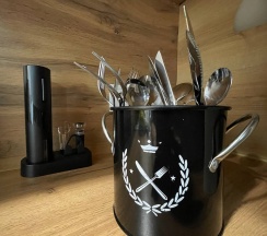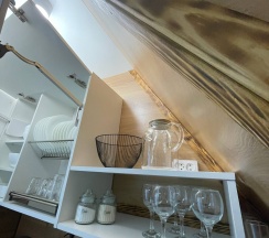 Техническое оснащение кухни: холодильник, микроволновая печь, варочная индукционная панель, посудомоечная машина, чайник, электрический штопор, кухонная утварь