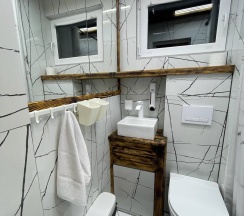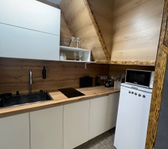 Особенность: двухъярусный семейный номер с кухней и отдельным входом, вид на лес и в сад, площадь 35 кв.м. 2 санузла с окнами!Дополнительное спальное место - это диван-кровать двухместный.