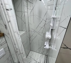 Санузел: душевая (душевая система с терморегулятором 3 лайками, унитаз безободковый с микролифтом (инсталляция), раковина, термостена, зеркало с подсветкой