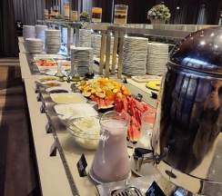 Прекрасное место, воздух,атмосфера. Все для релакса и кайфа. Единственное не повезло с погодой, ветер, дождь и гололед. Поехали отдыхать с мамой, у неё проблемы с ОДА ,соответственно на завтраки она попасть не могла. Обратилась к администратору Екатерине ( в ресторане),она любезно вошла в наше положение, и предоставила контейнер для мамы. Приятно, когда человек готов помочь и любезен, несмотря на то, что вынос еды запрещён. Екатерина, респект и ещё раз спасибо.