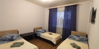 Трехместный номер стандарт с 3 односпальными кроватями, с душем и СУ, есть ТВ и wi-fi.