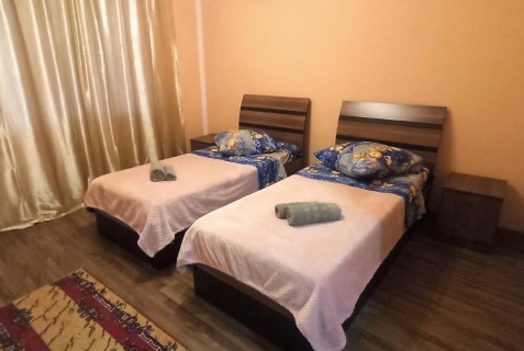 Номер стандарт с 2 односпальными кроватями, с душем и СУ, есть ТВ и wi-fi.