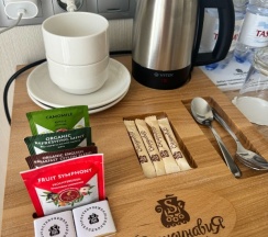 Великолепно! Лучший отель! Чисто, уютно. Включены завтраки, которые ты выбираешь накануне: основное блюда, два дополнительных и три напитка. Чай, кофе, вода - в номере. Все мыльно-рыльные, бритвенные принадлежности, халат, полотенца есть, с собой везти ничего не нужно. Хорошее место для начала туристического маршрута по Томску: от отеля спуститься к Воскресенской церкви по Бакунина, потом к музею истории Томска и дальше набережная и проспект Ленина.