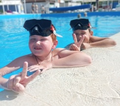 Питание шведский стол, вкусно, разнообразно. Отличный бассейн и собственный пляж. Аниматор чудесный, аквааэробика, развлечения для детей!!!