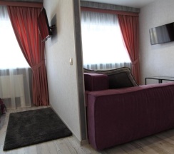 3-х комнатные номера. Две двуспальные кровати. Диван. Возможно размещение до шести человек. Два телевизора, собственная ванная комната ( пол с подогревом)/