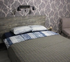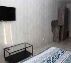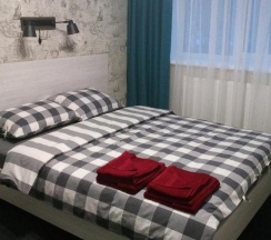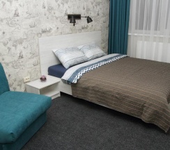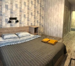 Две комнаты, размещение до пяти человек. В комнате двуспальная кровать, диван, телевизор, с/у