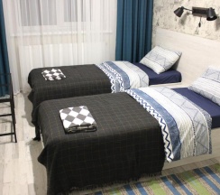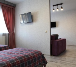 4-х местная, двухкомнатная комната. Расположена на третьем этаже. В одной комнате 2 раздельные кровати, в другой диван-кровать(двуспальный).В комнате есть холодильник и чайник. В каждой комнате телевизор.С/у в номере.