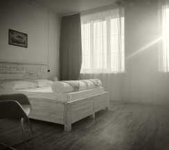 Были с мужем проездом. Стилистика отеля креативная. Везде висят шикарные картины, ретро вывески, мебель в стиле Лофт, а так же идея с пластинками выглядит круто. Проживали в номере ДеЛюкс за 3500 рублей. Номер чистый, просторный. Так же в номере присутствует холодильник, посуда, телевизор, одноразовый комплект гигиены, комплект полотенец, и тапочки. На входе встретил приятный администратор. Подсказали куда сходить за продуктами и поставить машину