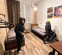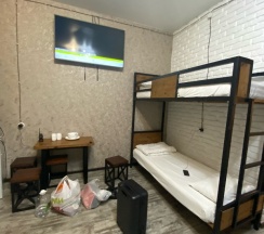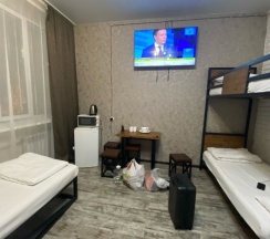 Отличный отель, ночевали одну ночь, один номер был трехместный, но заселили нас двоих, второй номер был на шесть человек, но заселили тоже двоих, по стоимости 1000 рублей с человека, за 2 номера отдали 4000, цена-качество соответствует. В отели тихо, чисто, тепло. В номерах есть холодильник, чайник, микроволновка и посуда, телевизор. Также есть стол и табуретки. Кровати удобные. Есть возможность постирать белье, стоимость одной загрузки стиральной машины 200 рублей, кроме того дают сушилку, за ночь все высохло отлично. Администратор приветливая, приятная женщина.