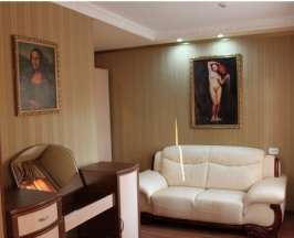 В номере: три кровати размером 1200*2000 ; плательный шкаф ; холодильник; кондиционер ; журнальный столик ; уалетный столик ; кабельное ТВ ; электрический чайник ; посуда ;три прикроватных тумбочки.