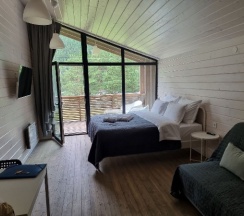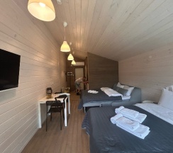 Видно что владелец реально вложился в качественное жильё(не слышно соседей по номерам, хорошие плотные двери, что и для звукоизоляции и для зимы отлично) и очень приятную атмосферу на территории.