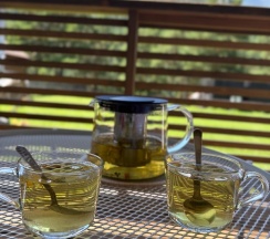 Приносят чай в чайнике - очень вкусный и это очень кстати - вечером посидеть на балконе и выпить чай!