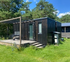 Вся мебель новая, в домике чисто и аккуратно, уборная - идеально чисто. Из бытовых приборов все есть, чайник, холодильник, микроволновка.