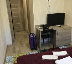 Неплохой отельчик, чтобы перекантоваться. Всё необходимое для жизни в шаговой доступности есть. Цены на номера неплохи. Есть завтраки. Номера с удобствами, прибранные, уютные. Wi-fi не медленный, на 2 этаже 20 Мбит/сек давал. В номере был холодильник, кондиционер, телевизор, кровать, стол, стул, шкаф для одежды, душевая, кровать, чистое постельное бельё, тёплые одеяла, тапочки. Есть питьевая вода на этаже в бойлерах. Сотрудницы вежливые, внимательные.
