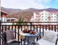 Чисто, уютно, вид на горы с балкона. Тёплый пол. Фен, стиралка и пр, всё есть. Хорошие кровати, матрасы, подушки. Брали номер премиум.