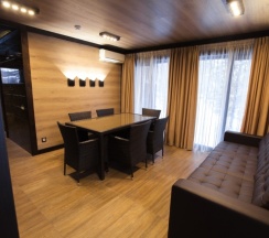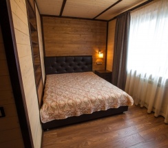 220 кв.м, рассчитан на 24 чел., макс. размещение до 32 чел. (спальных мест на 8 чел.) Комплектация: Две двухместные кровати ( с ортопедическим матрасом и подушками в отдельных комнатах); Один двухместный раскладной диван в отдельной комнате; Один двухместный раскладной диван в банном комплексе.