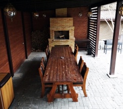 - терраса с большим столом и мангальной зоной (в летний период - 2 лежака с пляжными полотенцами), за доп оплату установлена японская бочка фурако.