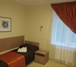 Компактный и уютный одноместный номер оборудован всем необходимым для комфортного проживания. Шкаф для одежды, удобная односпальная кровать, телевизор, телефон, . Оформление интерьера выполнено в пастельных, приятных для восприятия тонах. В каждом номере есть своя туалетная комната с душем. В номерах есть бесплатный доступ к сети Интернет (Wi-Fi). При необходимости проживания в номере второго человека, стол-тумба трансформируется в отдельное дополнительное спальное место.