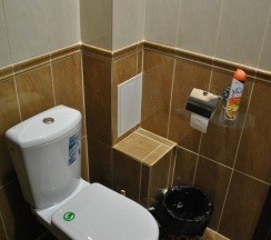 Не понравилось: Ванная не уютная. Но построено так, не очень. Возможно цветная занавеска бы исправила положение.