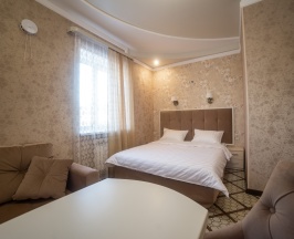 Уютный однокомнатный номер, в котором могут разместиться один или два человека. Номер площадью 18 кв.м. выполненный в спокойной цветовой гамме, располагает к отдыху. В номере имеется спальная зона с удобной двухспальной кроватью, рабочая зона с рабочим столом и чайным набором, ванная комната с бодрящим душем. Стандартный номер - это оптимальный вариант для семейных пар и влюбленных. Он привлекает уютной обстановкой и современным дизайном.